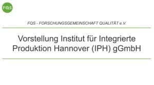 Vorstellung FQS-Partnerforschungseinrichtung: IPH – Institut für Integrierte Produktion Hannover gGmbH