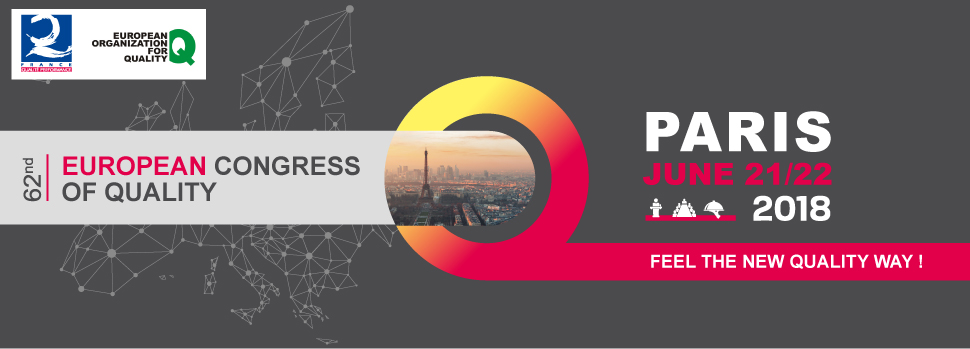 Am 21. und 22. Juni 2018 findet der EOQ Quality Congress in Paris statt. Die internationale Veranstaltung mit hochkarätigen Referenten aus dem Bereich Qualitätsmanagement steht diesmal unter dem Motto: „Feel the new Quality way!“