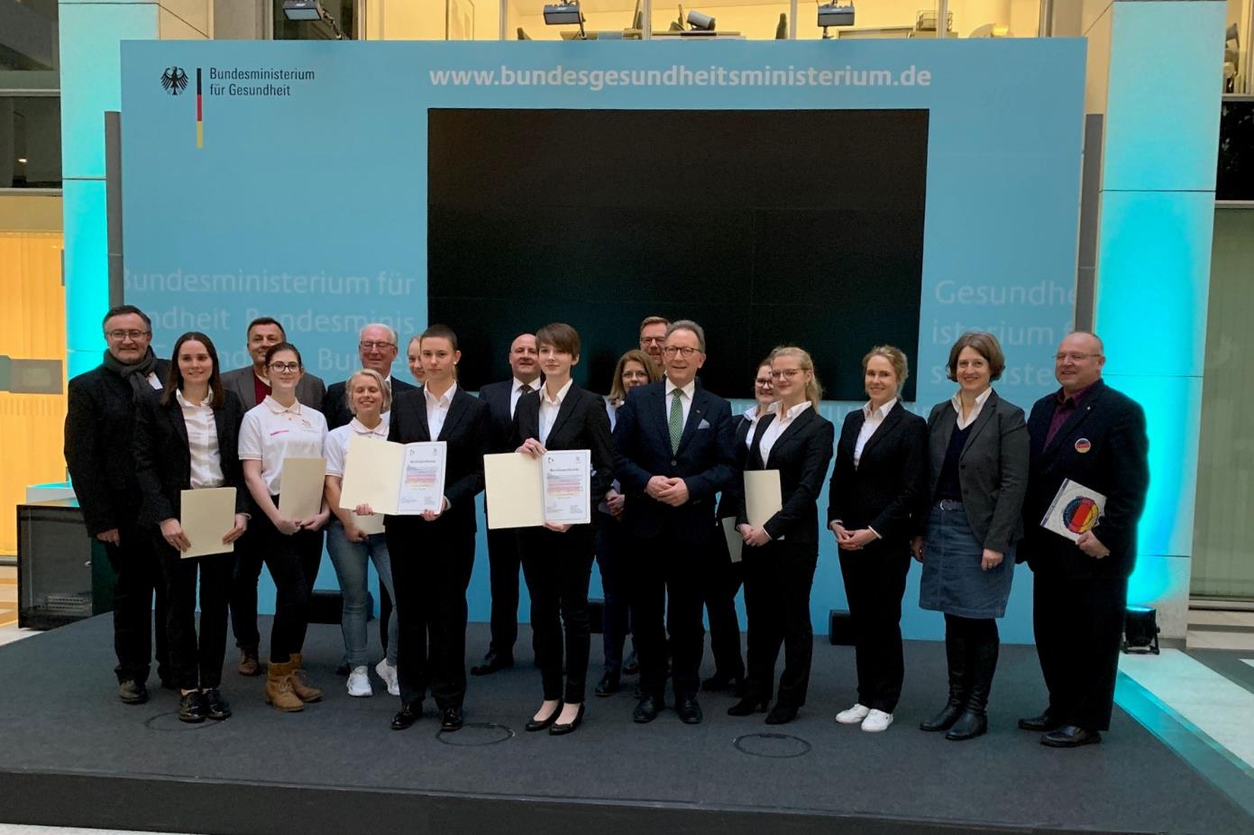 Am 31. Januar wurden im Gesundheitsausschuss des Bundestages die Teilnehmerinnen für die „Nationalmannschaft Pflege Deutschland“ berufen. Eingeladen hatte der „Deutsche Verein zur Förderung pflegerischer Qualität e.V.“ (DVFpQ), mit dem die DGQ eine Förderkooperation geschlossen hat. Die Pflege-Nationalmannschaft wird bei der Europameisterschaft der Berufe, „euroskills“, in Graz im September für Deutschland in der Kategorie Sozialberufe teilnehmen. Erwin Rüddel, Vorsitzender des Gesundheitsausschusses, übergab die Benennungsurkunden. Er bedankte sich für das Engagement und wünschte dem Team viel Erfolg für den Wettbewerb.