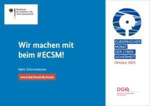 Im Oktober 2019 findet erneut der European Cyber Security Month (ECSM) statt. Der ECSM sensibilisiert seit 2012 europaweit Bürger sowie Organisationen für den verantwortungsbewussten Umgang im Internet und mit digitalen Medien. Zum ESCM bieten die Mitgliedstaaten der Europäischen Union unter Federführung der europäischen IT-Sicherheitsbehörde European Union Agency for Network and Information Security (ENISA) verschiedene Veranstaltungen, Informationen und andere Aktionen an. In Deutschland unterstützt und koordiniert das Bundesamt für Sicherheit in der Informationstechnik (BSI) die Aktivitäten.