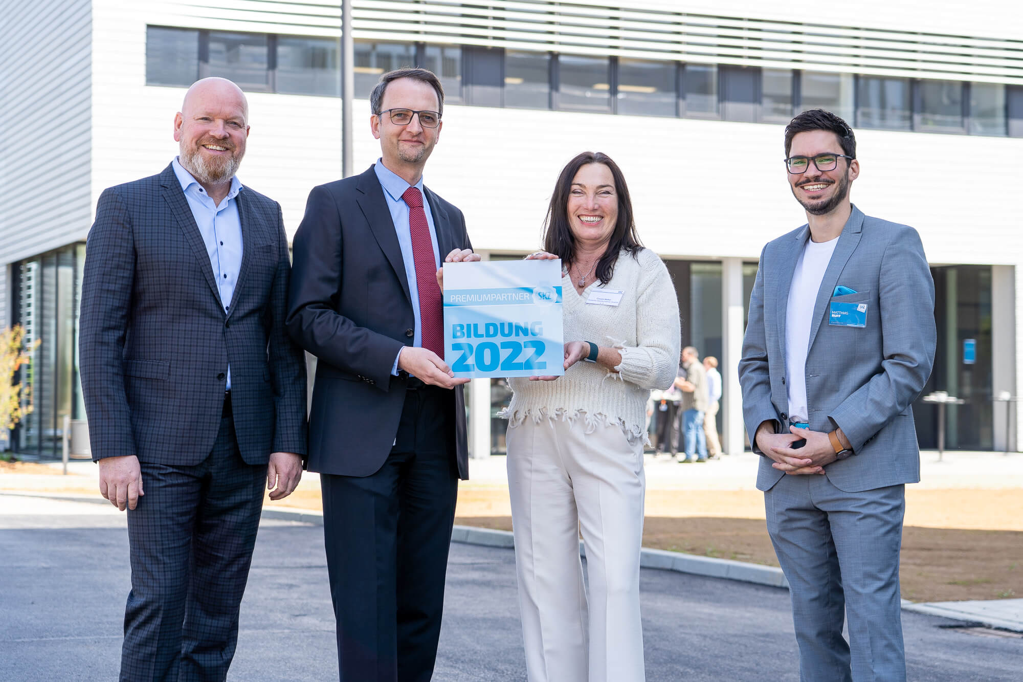 V. l. n. r.: Andreas Heinz (DGQ), Christoph Kreutz (SKZ), Claudia Welker (DGQ) und Matthias Ruff (SKZ) bei der Übergabe der Urkunde. ©SKZ