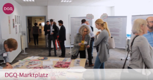 Danach öffnete der DGQ-Markplatz seine Pforten. Kollegen und Kolleginnen aus verschiedenen Abteilungen des Hauses stellten sich mit ihren vorbereiteten Plakaten und Auslagematerialien dem Informations- und Wissensbedarf der neuen Mitglieder. Wer sich gerade nicht am Marktplatz tummelte, konnte sich entspannt die DGQ-Videoreihe anschauen oder ein Statement zum Thema „Qualität vereint“ oder zum Begrüßungstag abgeben. Gegen Nachmittag klang die Veranstaltung langsam aus, einzelne Gäste nutzten auch hier noch einmal die Gelegenheit zu vertiefenden Gesprächen.