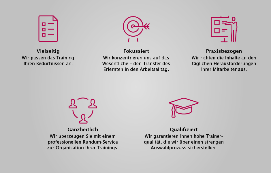 - Wir konzentrieren uns auf das Wesentliche: den Transfer des Erlernten in den Arbeitsalltag